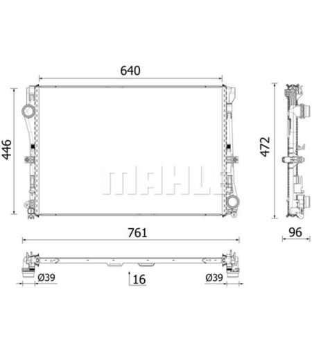 Entrata-ø [mm]: 39. Indice: CR 2603 000P. Larghezza della rete [mm]: 446. Lunghezza della rete [mm]: 640. Materiale alette di raffreddamento: Alluminio. Materiale vaschetta acqua (radiatore): Plastica. Numero del Produttore: CR 2603 000P. Produttore: MAHLE, MAHLE. Profondità della rete [mm]: 16. Tipo radiatore: Alette di raffreddamento saldate. Uscita-ø [mm]: 39. ...