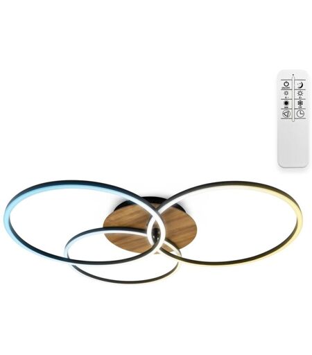 Lampada da soffitto LED ha varie funzioni: con il telecomando è possibile modificare la temperatura di colore della luce in modo continuo da bianca fredda a calda ( CCT 3.000 - 6.500 Kelvin) e variare l'intensità della luce. La temperatura di colore della luce può essere modificata anche premendo ripetutamente linterruttore a parete La plafoniera LED Frame ha un timer di 30 minuti e una funzione di luce notturna che prevede una luce soffusa e calda di 3000 Kelvin. E quindi molto indicata per la camera da letto o la cameretta dei bambini. La funzione di memoria salva automaticamente l'ultima impostazione di luce Il lampadario LED crea una luce di 4.400 Lumen con un consumo di 40 Watt. Ha 3 cerchi neri e unapplicazione in legno sul rosone che insieme creano un effetto moderno e vintage allo stesso tempo Le dimensioni della plafoniera sono 717x674x108 mm (LxWxH). I tre anelli LED hanno un diametro di 39 cm. I due inferiori possono essere ruotati di 360 gradi Il rosone rotondo da fissare ...