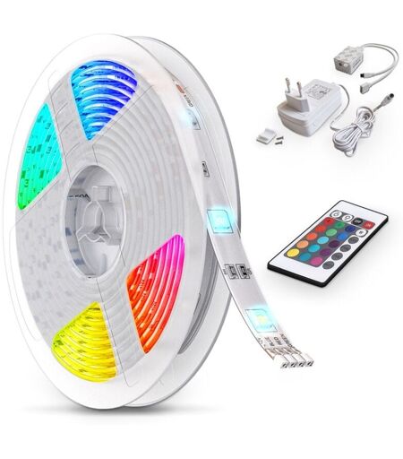 B.K.LICHT - Striscia a led 5m rgb, telecomando cambia colore, accorciabile, adesiva, dimmerabile, luci colorate per decorazioni, nastro led per