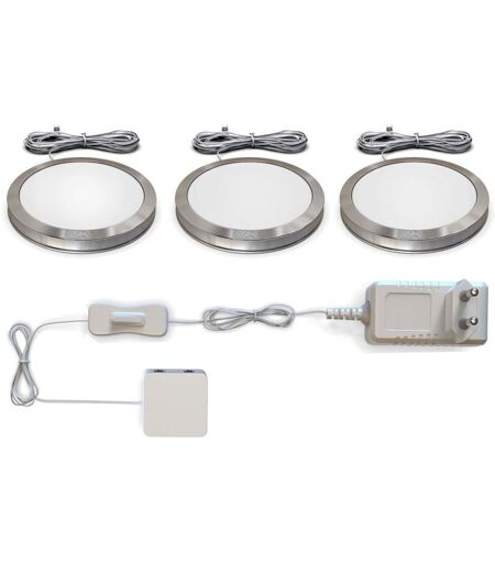 LUMINOSITA' - Le luci da incasso LED color alluminio creano una luce calda 3000 Kelvin con un'intensità di 170 lumen per faretto. Anche gli angoli degli armadi potranno quindi essere illuminati SET COMPLETO - Pratico kit composto da 3 luci con alimentatore, interruttore, adattatore e viti. Diametro 59 mm DUREVOLE ED ECOLOGICO - Un ciclo di vita medio di 30.000 ore permette di usare il prodotto in tutta tranquillità . Non dimmerabile RISPARMIO ENERGETICO - Con un consumo di 1,8 Watt per faretto, il consumo energetico è estremamente basso SERVIZIO CLIENTI - La soddisfazione dei nostri clienti ci sta molto a cuore - in caso di problemi o osservazioni attendiamo con piacere un vostro messaggio ...