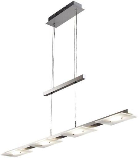 Il design semplice e senza tempo di questa lampada a sospensione in metallo color nichel opaco e vetro permette di inserirla in modo armonioso in vari contesti - il lampadario a sospensione è particolarmente adatto ad essere montato sopra il tavolo da pranzo La luce prodotta è calda 3000 Kelvin con intensità pari a 4 x 400 Lumen e un indice di resa cromatica di 80. Le 4 piastrine LED sono integrate e hanno una potenza di 4.5 watt e una durata media di 15.000 ore Il lampadario è regolabile in altezza tramite i pulsanti posizionati sulla barra passacavi 1 lampada a sospensione a LED con 4 luci integrate e non sostituibili. Materiale metallo e vetro. Regolabile in altezza (920mm-1.700mm) La soddisfazione dei nostri clienti ci sta molto a cuore - in caso di problemi o osservazioni attendiamo con piacere un vostro messaggio ...