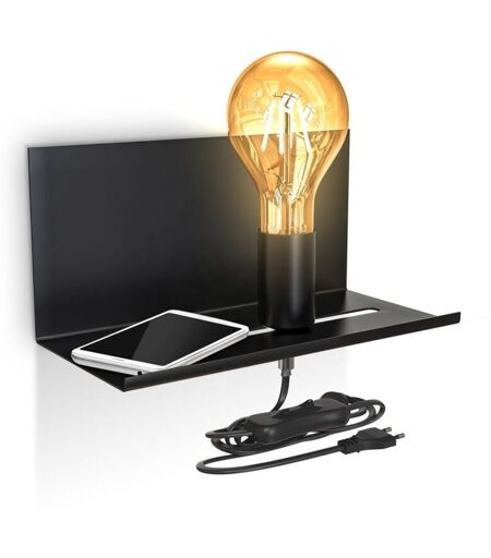 B.K.LICHT Lampada da parete con mensola, Interruttore sul cavo di alimentazione, attacco per lampadina E27 non inclusa, Applique retrò per camera, Lampada da