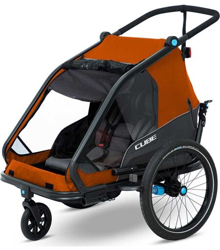 Il CUBE Kids Trailer Double CMPT è il compagno ideale per ogni giorno. Questo sofisticato multi-talento è un rimorchio per bici e passeggino per bambini in uno. Una grande rete anti-insetti che si estende su tutta la parte anteriore e sui lati tiene lontani gli insetti senza compromettere la circolazione dell´aria fresca. I bambini possono fare un pisolino in tutta tranquillità grazie alla tenda parasole che protegge dalla luce intensa. La protezione dagli schizzi consente di continuare a pedalare anche quando fuori è fangoso e bagnato, mentre i bambini rimangono asciutti. L´imbottitura del sedile e dello schienale e un poggiatesta con tasca per il casco assicurano il comfort dei più piccoli. La sospensione regolabile individualmente può essere adattata al terreno e al peso del carico. Per una maggiore flessibilità, il rimorchio è compatibile con il Jogger Kit.Caratteristiche:- Facile da usare- Imbottitura del sedile e dello schienale- Poggiatesta regolabile con tasca per il casco- Finestra posteriore- Tenda parasole, rete e protezione dagli schizzi- Manubrio ergonomico regolabile in altezza- Prese d´aria laterali- Bagagliaio da 70 litri- Sospensione regolabile- Ruote a sgancio rapido- Parti funzionali colorate- Elementi riflettenti- Incluso gancio di traino, bandiera, ruota passeggino, luce posteriore con batterieSpecifiche:- Peso: 18 kg- Carico massimo: 42 kg- Carico di supporto: 1 - 8 kg- Materiale: Metallo, plastica, tessutoDimensioni:- Modalità passeggino: (LxPxH) 63 x 86 x 102 cm- Piegato: (LxPxH) 101 x 69 x 38 cm ...