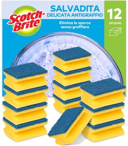 3M - Scotch-Brite Spugna abrasiva Salvadita delicata antigraffio, 12 pezzi per confezione - ideale per l'uso quotidiano, incluse pentole antiaderenti