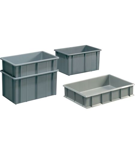 Realizzato in polietilene · altamente resistente e dotato di nervature di stabilizzazione extra · superfici interne lisce, facili da pulire · adatto al contatto alimentare · resistente alle temperature da -20 °C a +90 °C · colore grigio ...