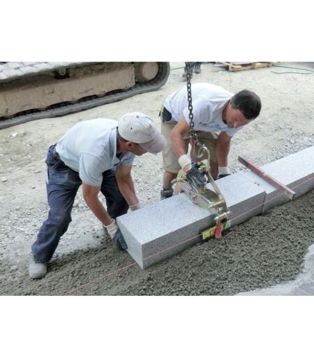 Sconto Grab EASYGRIP EXG Pinze meccaniche per afferrare elementi di calcestruzzo paralleli, piatti e non conici, come sconti, piastre, gradini di blocco e cordoli con una distanza di presa da 0 a 300 mm e un peso massimo di 550 kg La presa di sconto è fissata ad un dispositivo dell'elemento portante dalla slitta o dalla catena (gru di caricamento, mini escavatore, ecc.) e può essere azionata da una persona dalla macchina Poiché le pinze sono dotate di due maniglie, è adatto anche per il funzionamento manuale con due persone ...