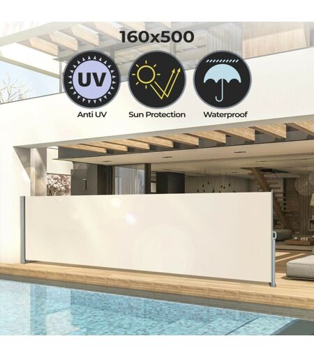 FLIVASTORE - Tenda da Sole Laterale - 500 x 160 cm, Anti uv, Frangivento, Frangivista, Privacy, Beige - Paravento Laterale, Rettratile, Avvol