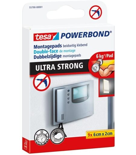Tesa Powerbond Ultra Strong - tamponi bifacciali per l'installazione in interni e in esterni protetti - adesivo ultraresistente su entrambi i lati