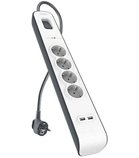 Belkin Ciabatta multipresa con usb e 4 prese, protezione dalle sovratensioni con 4 prese ca protette e 2 porte di ricarica usb-a da 2,4 a, cavo di prolunga
