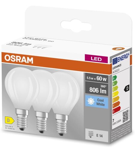Osram Lampadine LED E14 forma a sfera 806lm bianco opaco 3 pz 4000K