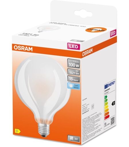Osram - led Star GLOBE95, lampada led a filamento opaco a forma di globo con diametro di 95mm, base E27, bianco freddo (4000K), 1521 lumen,