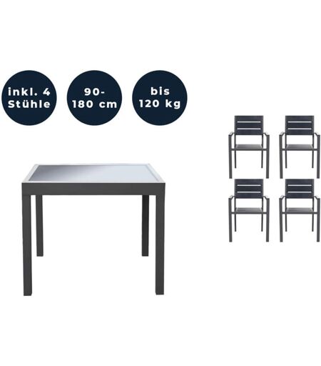 Home Deluxe Gruppo di sedute da giardino allungabile verano madera - 180/90 x 90 cm Versione: incl. 4 sedie -