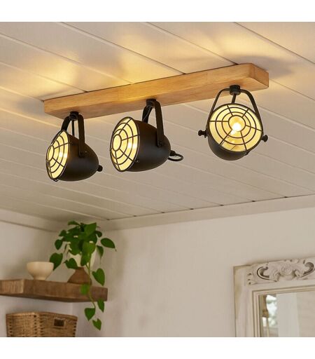 ETC-SHOP - Lampada da soffitto nero lampada da soggiorno casa di campagna faretto da soffitto 3 luci lampada in legno, striscia di faretto