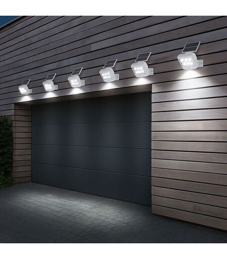 Descrizione Questa pratica applique a LED combina la moderna tecnologia solare con una funzione intelligente di rilevatore di movimento. Il pannello solare integrato carica le batterie durante il giorno e fornisce energia alla lampada in modo indipendente. Con sei LED e 150 lumen, la lampada produce una luce bianca fredda, simile alla luce diurna, con 6500 Kelvin, ideale per illuminare ingressi, pareti di casa o patii. Il rilevatore di movimento rileva i movimenti entro un raggio di 5-8 metri e accende automaticamente la luce per 30 secondi. La direzione della luce può essere personalizzata grazie al faretto mobile. Grazie al grado di protezione IP44, la luce è resistente alle intemperie e adatta all'uso permanente all'esterno. La fornitura comprende sei luci. Dettagli della luce - Tipo di lampada: Applique - Materiale: plastica - Colore: bianco • incl. pannello solare • Rilevatore di movimento • Portata: 5-8 metri • Angolo di rilevamento: 90° • Durata della luce: 30 secondi - Faretto ...
