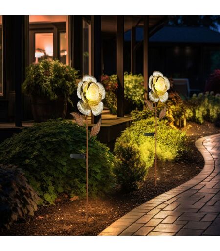 ETC-SHOP 2x lampade a spina solare a led fiori decorazione del giardino picchi di terra luci del cortile ruggine d'argento