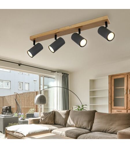 ETC-SHOP Faretto da soffitto 4 fiamme plafoniera aspetto legno GU10 lampada da soffitto soggiorno con faretti orientabili, metallo, 4x GU10, LxPxH 56x6x12 cm