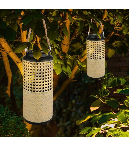 ETC-SHOP Lampada a luce solare da giardino in bambù lampade solari lanterna in rattan da posare e appendere, 1x led bianco caldo, DxH 12 x 45 cm, set da 2