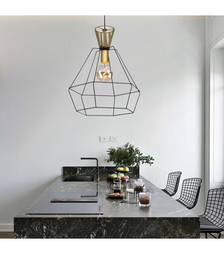 Descrizione Questa lampada a sospensione dal design a gabbia colpisce per il suo moderno stile retrò. Il paralume è costituito da una griglia in acciaio nero. Dotato di un attacco E27, puoi utilizzare una lampadina con una potenza massima di 40 watt e decidere così tu stesso il colore e l'intensità della luce. La lampadina non è inclusa nella fornitura. Particolare lampada • Tipo di lampada: lampada a sospensione • Materiale: metallo • Colore: bronzo, verde, nero • Regolabile in altezza prima del montaggio • Classe di protezione: 1 • Grado di protezione: IP20 • Diametro paralume x altezza in cm: 38x50 • Altezza in cm: 55 - massimo 178 • Presa: 1x E27 • Lampadina inclusa: No • Potenza della lampada: massimo 1x 40 watt • Alimentazione: 220V, 50Hz ...