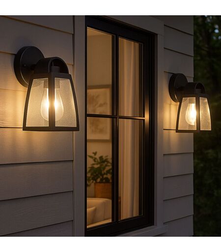 ETC-SHOP Set di 2 lampade da parete a led lanterne da esterno illuminazione per facciate alu luci da giardino in vetro nero