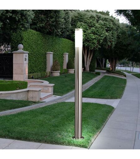 Descrizione Lampada per esterni semplice, ma comunque moderna. La lampada da esterno alta e sottile è stata realizzata quasi interamente in acciaio inossidabile, la plastica è stata lavorata solo intorno all'area della sorgente luminosa per creare un'atmosfera particolarmente piacevole. Rispetto alle luci normali, i faretti a LED consumano solo una quantità minima di elettricità e hanno un consumo persino inferiore rispetto alle luci a risparmio energetico. Questo protegge l'ambiente e il tuo portafoglio. È inclusa una sorgente luminosa a LED di alta qualità a risparmio energetico. Dettagli lampada • tipo di lampada: lampada da esterno • materiale: acciaio inossidabile • paralume: plastica, opale • grado di protezione: IP44 • diametro x altezza in cm : 7,6 x 110 • Diametro base in cm: 12,7 • attacco: 1x E27 • sorgente luminosa inclusa: si • sorgente luminosa: 1x 10 watt • flusso luminoso: 1x 806 lumen • colore luce: bianco caldo • alimentazione: da 220V a 240V, da 50Hz ...