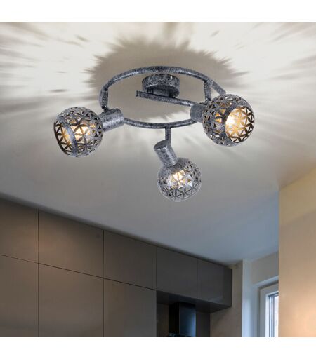 ETC-SHOP Plafoniera plafoniera faretto luce soggiorno lampada sala da pranzo, metallo grigio antico, 3 punti luce mobili, E14, D 26 cm