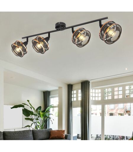 ETC-SHOP Faretto da soffitto, lampada da soggiorno, strip spot, plafoniera, faretto, faretti orientabili, metallo, color oro nero, design a griglia, 4x E14,