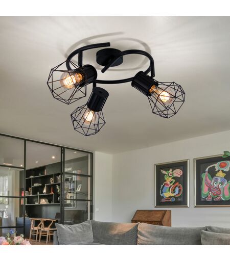 ETC-SHOP Spot roundel faretto gabbia regolabile plafoniera soggiorno illuminazione reticolo lampada nera