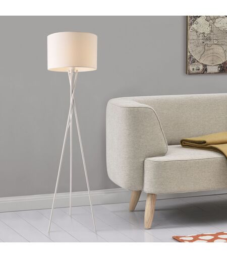LUX.PRO Lampada da Terra in Stile Treppiede - Altezza 154 cm - Piantana Tripode con Paralume Cilindrico ø 38 in Tessuto - Bianco
