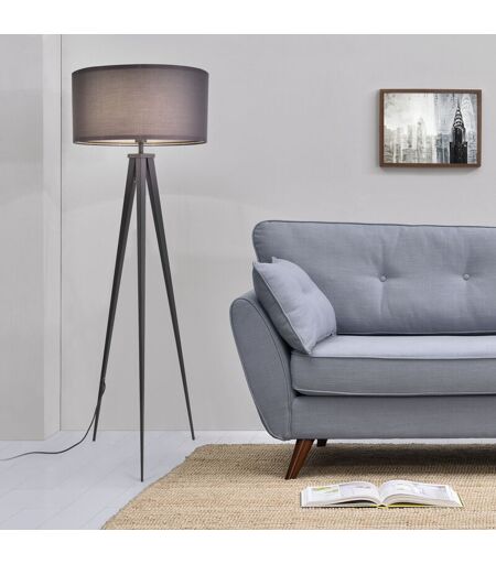 LUX.PRO Lampada da Terra in Stile Treppiedi con Base in Metallo e Paralume Cilindrico in Tessuto E27 60W Piantana Tripode - Grigio chiaro