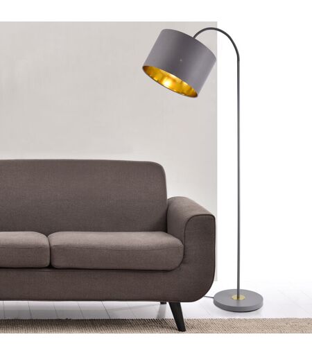 LUX.PRO Lampada da Terra Alta 173 cm Lampada a Stelo Curvo con Paralume Orientabile - Piantana con Abat-jour Cilindrico in Tessuto - Grigio