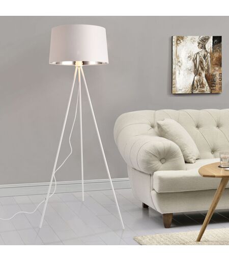 LUX.PRO Lampada da Terra in Stile Treppiedi Alta 150 cm Piantana Tripode con Base in Metallo e Paralume Conico in Tessuto - Bianco