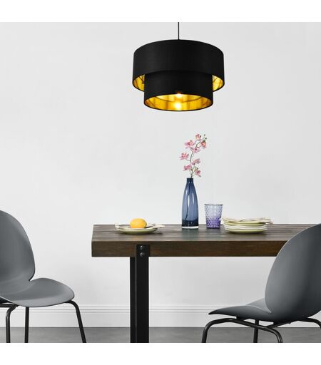 Lampada a sospensione Questa lampada si distingue per il suo design ricercato, capace di coniugare linee pulite e materiali resistenti in una soluzione d’illuminazione dallo stile raffinato. Il protagonista è il paralume doppio, una scelta estetica che crea un elegante gioco di volumi sovrapposti, aggiungendo profondità visiva e un tocco di originalità all’ambiente. Il rivestimento esterno in tessuto nero dona un’eleganza decisa e sofisticata, mentre l’interno color oro aggiunge un tocco di calore, riflettendo la luce con una luminosità avvolgente e creando un’atmosfera accogliente e ricercata. Realizzata con una solida montatura in metallo, questa sospensione garantisce durata e stabilità nel tempo, mantenendo al contempo una leggerezza visiva che la rende adatta a molteplici contesti. Con le sue dimensioni proporzionate, è ideale sia per ambienti raccolti che per spazi più ampi. Il cavo consente una regolazione flessibile in altezza, adattandosi alle esigenze specifiche di ogni ...