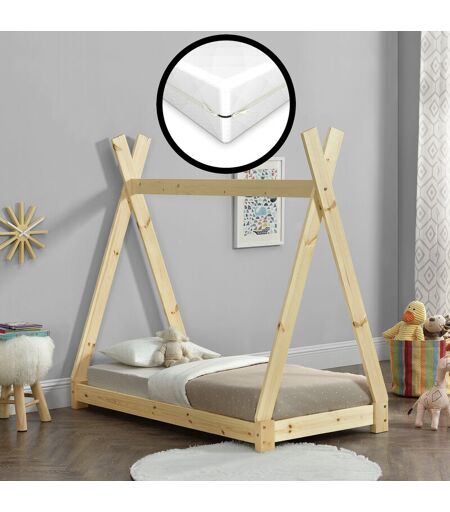 Letto per bambini Caratteristiche: - Letto per bambini di stile teepee indiano - Letto robusto e durevole - Montaggio facilissimo Dimensioni: - Misure totali (Lu x La x A): 148 x 76 x 140 cm - Barra teepee (A x La x P): 130 x 8 x 2 cm - Misure del materasso (Lu x La): 140 x 70 cm - Altezza della cornice letto: 9 cm - Distanza tra il pavimento e la cornice letto: 4 cm Materiale: Legno di pino Colore: Pino naturale Prodotto della marca [en.casa] . Materaso a schiuma fredda 70x140 cm Materiale: Fodera step imbottito di lana all'interno, 100% poliestere all'esterno Caratteristiche: - Made in EU - Premiato di Öko-Tex standard 100 (premio di prodotto affidabile) - Fodera step 1 cm, rimovibile, grazie alla sua formazione resistente ai liquidi - Schiuma fredda - Antiallergico - Traspirante - Resistente all'uso - Taglio di un pezzo di schiuma solida intera - Nucleo del materasso: schiuma fredda ipoallergenico, senza molle - Fodera esterna: 100g/m² - Densità: 23kg/m³ - Rigidità: 4,2 kPa ...