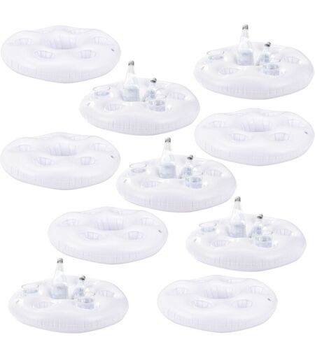 CASA.PRO Set di 10 Portabevande Galleggiante per Piscina Supporto Gonfiabile per Drink Ø60 cm Bianco