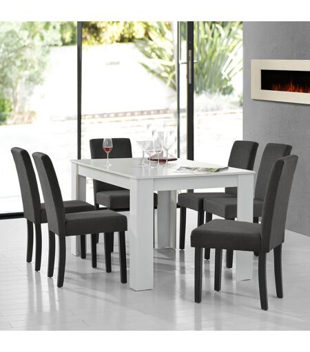 [EN.CASA] - Set da Pranzo Tavolo Rettangolare con 6 Sedie Imbottite - Bianco/Grigio