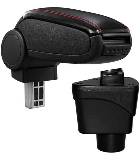 PRO.TEC Bracciolo centrale per Ford EcoSport ii (2012-2018) - Rivestimento in similpelle nero con cuciture rosse - con vano portaoggetti