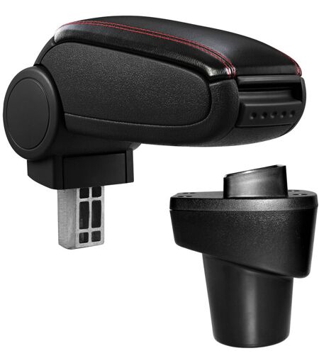 PRO.TEC Bracciolo centrale per Citroën C1 (da 2014-2018) e Peugeot 108 (da 2014-2018) - Rivestimento in similpelle nero con cuciture rosse - con vano
