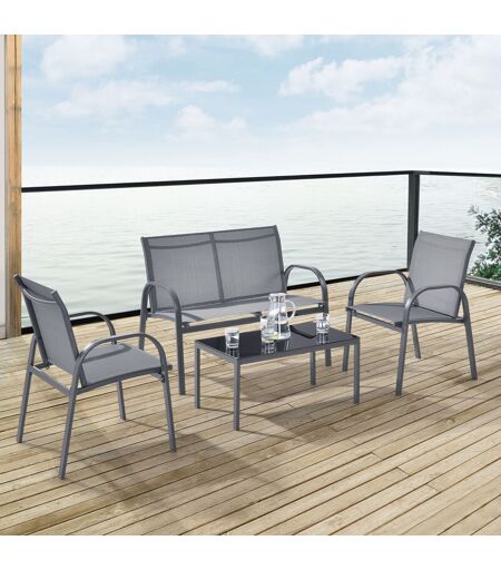 [EN.CASA] Set di Mobili da Giardino Fino a 4 Posti di Seduta Arredo Esterno Set Composto di 1 Divano e 2 Sedie con Braccioli e 1 Tavolino Basso con Piano in