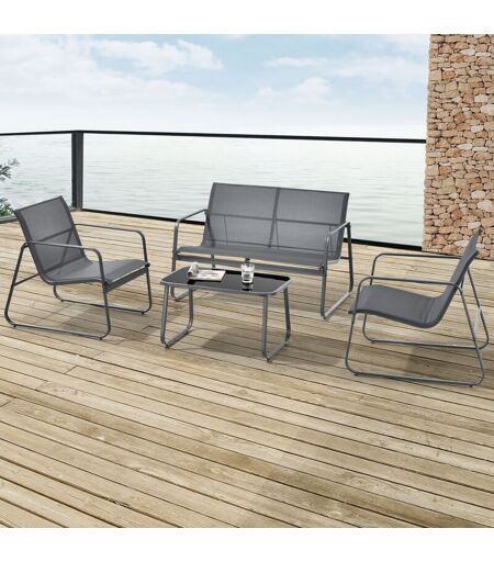 [EN.CASA] Set di Mobili da Giardino Arredo Esterno Set Composto di 1 Divano a 2 Posti + 2 Sedie con Braccioli + 1 Tavolino Basso con Piano in Vetro - Grigio