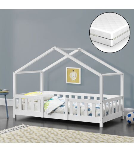 [EN.CASA] Letto per Cameretta Treviolo a Forma di Casetta con Materasso 70x140 cm Bianco neu.haus]