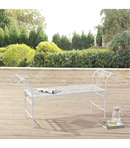 [EN.CASA] - Panca da Giardino/Terrazza/Balcone con 2 Posti di Seduta Panchina in Metallo con Elementi Decorativi e Braccioli Incurvati - Bianco