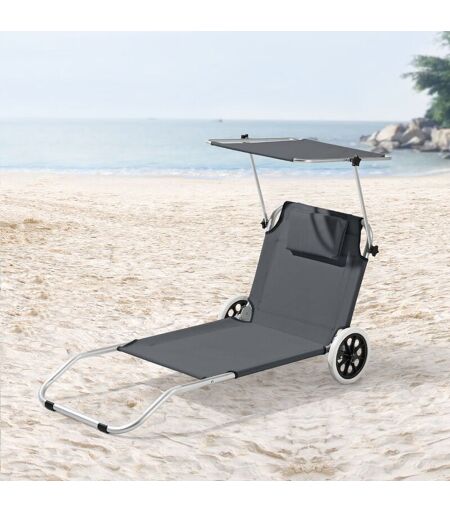 [EN.CASA] - Lettino Prendisole Portatile con Rete Portaoggetti, Sdraio Pieghevole con Schienale Reclinabile, Tettuccio Parasole e 2 Ruote - Supporto