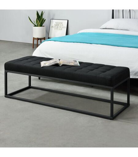 PRO.TEC - Panca per Interni Salta Ottomana Imbottita Trapuntata 120x40x38 cm Nero