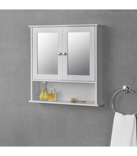 [EN.CASA] Armadietto Pensile a Bagno con Specchi e Ripiani 58 x 56 x 13 cm Mobiletto a Muro con 2 Ante - Bianco