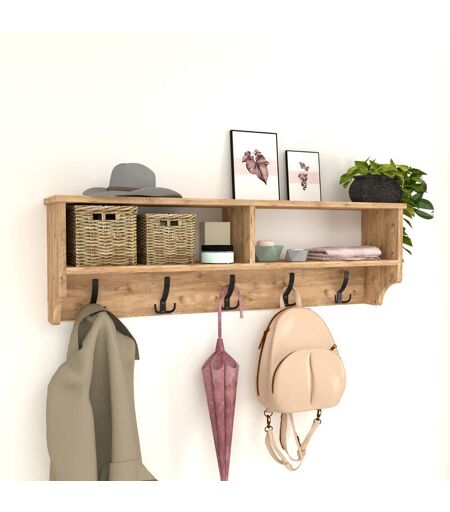 [EN.CASA] - Appendiabiti a Parete 'Åstorp' con Ripiani - Mensola Attaccapanni con 5 Paia di Ganci e Scomparti - Effetto Rovere