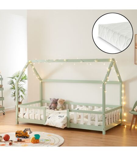 Letto per cameretta con materasso Questo letto casetta si distingue come un'opzione affascinante e funzionale per le camerette dei più giovani. Realizzato in legno di pino, il letto rimarrà a lungo il punto focale della stanza, grazie alla sua resistenza all'usura quotidiana. La forma a casetta con il suo tettuccio a capanna non solo aggiunge un tocco di fascino alla stanza, ma crea anche un ambiente accogliente e invitante. Le barriere di protezione che circondano la zona di riposo offrono una sicurezza ottimale durante il sonno. L'estetica giocosa del letto casetta si adatta perfettamente a una varietà di stili di arredamento, dal classico al contemporaneo, aggiungendo un tocco di originalità e fantasia alla stanza. Il materasso a schiuma fredda offre un eccellente comfort grazie alla sua struttura, che si adatta perfettamente alle curve del corpo. La schiuma ad alta densità fornisce un supporto uniforme, riducendo i punti di pressione e migliorando la postura durante il sonno. ...