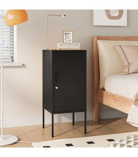 [EN.CASA] Armadietto Hausjärvi Comodino in Acciaio con Serratura Apertura Anta a Destra - Nero