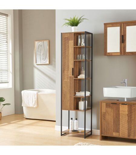 [EN.CASA] Mobile a Colonna Namsskogan per Bagno 165 x 42,5 x 30 cm Nero / effetto Legno Intarsiato color Noce