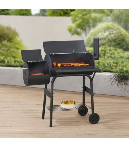 Smoker grill Pensato per gli amanti del barbecue che non vogliono rinunciare al sapore autentico neanche in viaggio, questo dispositivo è un compagno affidabile per avventure culinarie all'aperto. Lo smoker grill portatile è molto più di un semplice barbecue a carbonella. È un vero e proprio centro culinario in miniatura, in grado di grigliare, affumicare, e cuocere lentamente una vasta gamma di alimenti con risultati sorprendenti. La presenza del termometro integrato nel coperchio del barbecue ti permette di monitorare la temperatura interna senza dover sollevare il coperchio, mantenendo così la cottura sotto controllo e garantendo risultati perfetti ogni volta. Uno degli elementi distintivi di questo smoker è la sua camera per affumicatore separata, che consente di aggiungere quel caratteristico aroma affumicato ai tuoi piatti preferiti. Il comignolo posizionato strategicamente sulla parte opposta assicura una circolazione ottimale dell'aria. Grazie ai suoi due ripiani aggiuntivi, ...