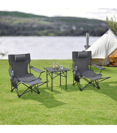 CASA.PRO - Set Bellante Pieghevole Tavolino e 2 Sedie Portatili - Grigio